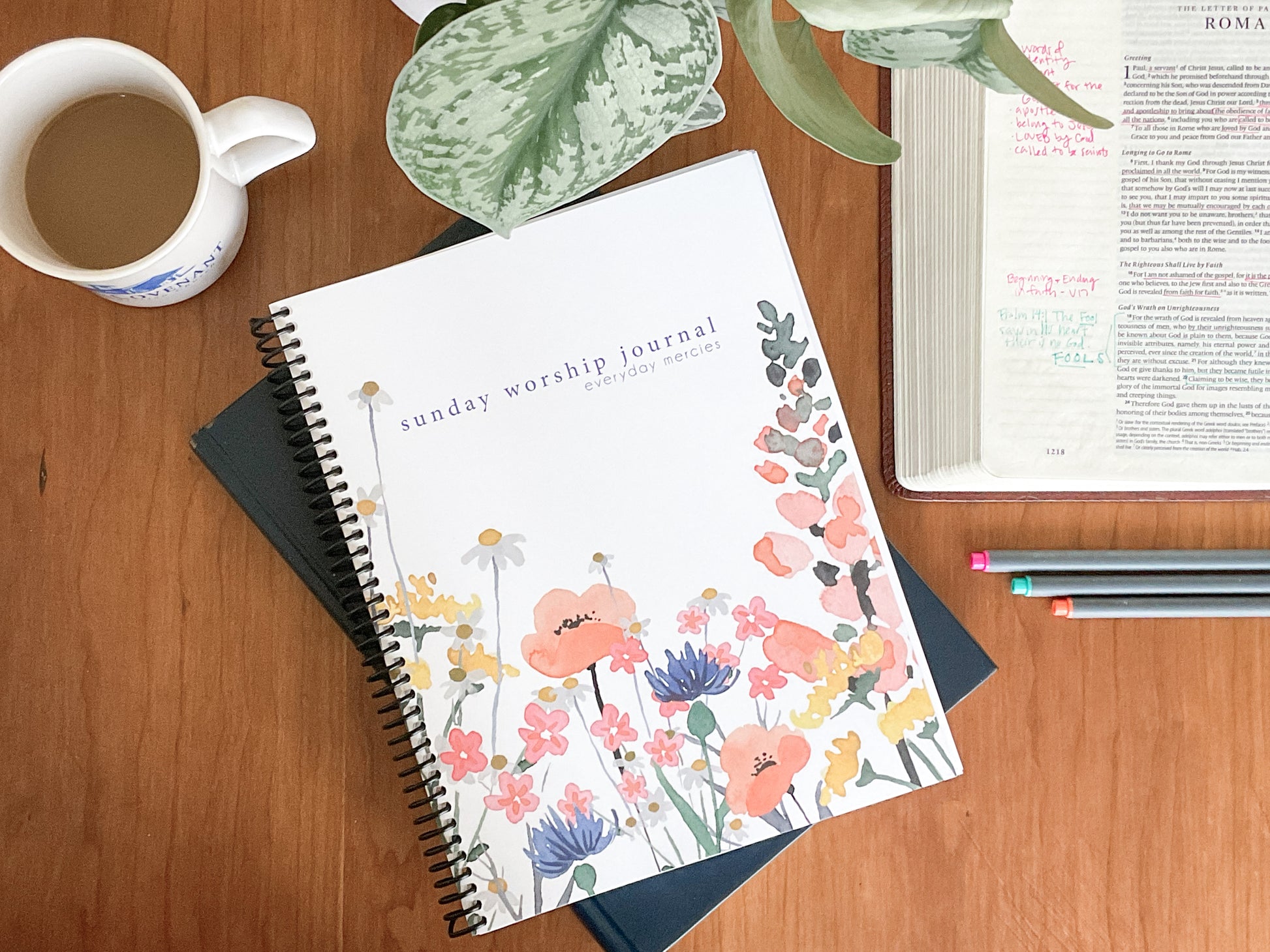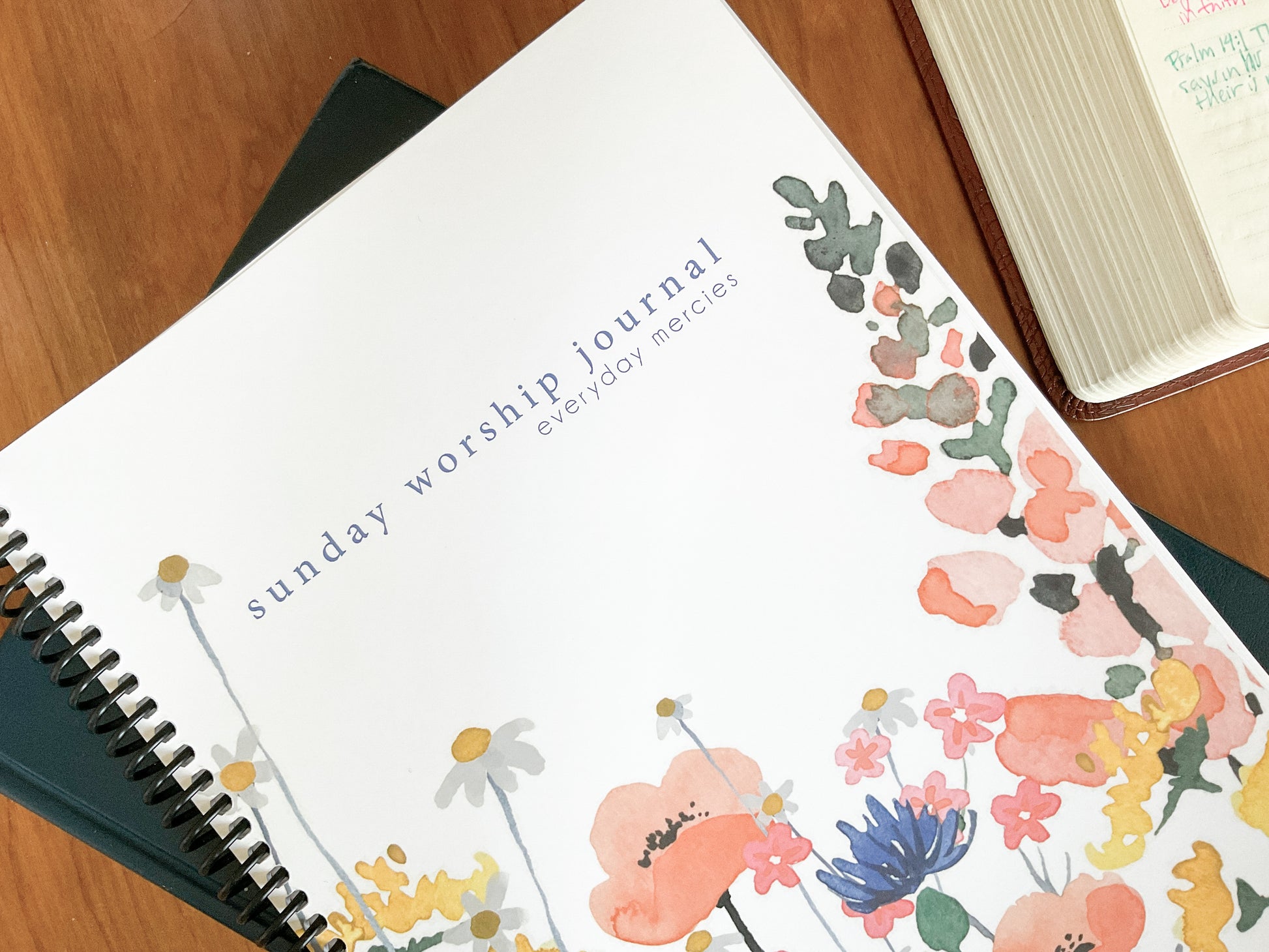 The Sunday Worship Journal by Everyday Mercies is the solution to every woman's organizational struggles on Sunday mornings.